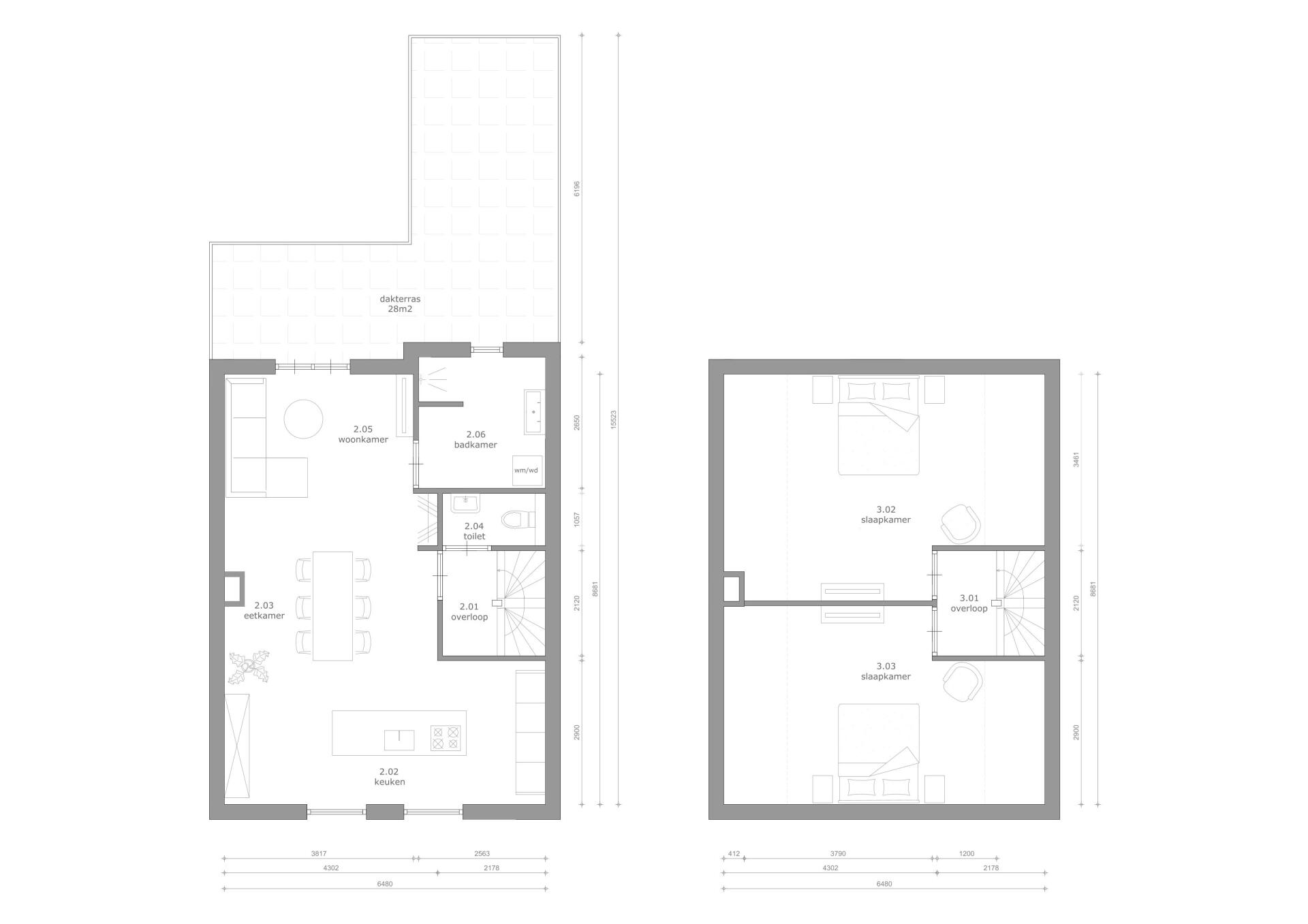 De bestaande winkel is getransformeerd naar meerdere woningen